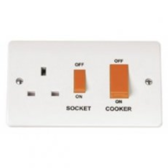 Click Mode CMA204 45A 2G DP Switch & Switched Socket - White Moulded Plastic