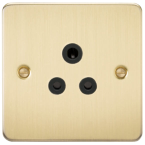 Knightsbridge Flatplate FP5ABB Unswitched Round Pin Socket - Brushed Brass Black Insert