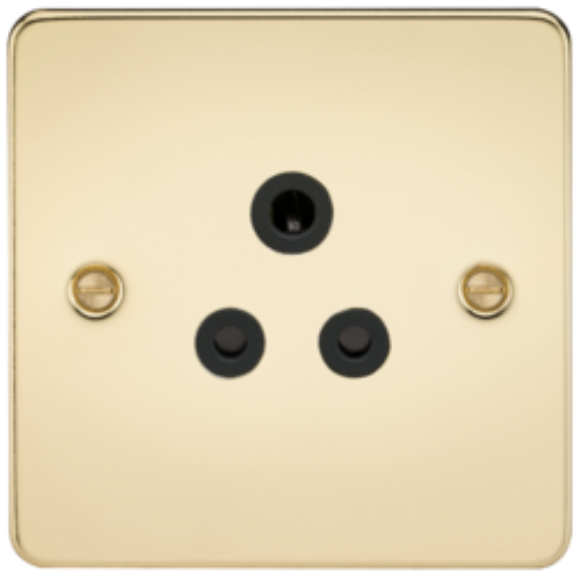 Knightsbridge Flatplate FP5APB Unswitched Round Pin Socket - Polished Brass Black Insert