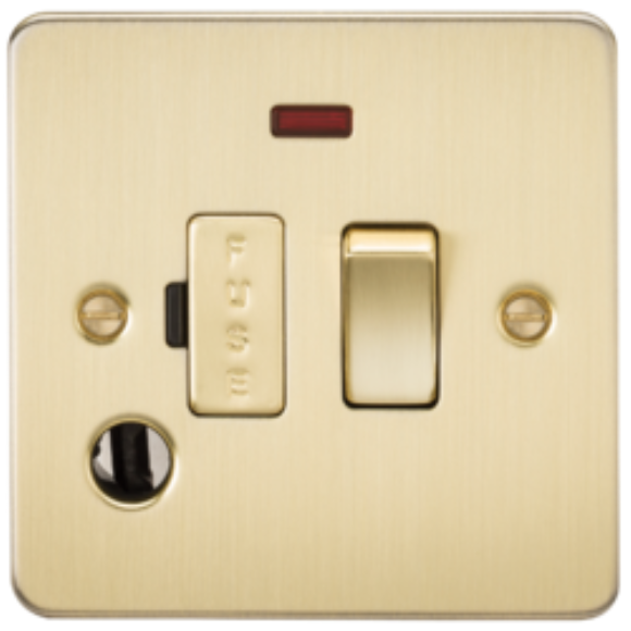 Knightsbridge Flatplate FP6300FBB Switched Fused Spur Unit with Neon & Flex - Brushed Brass
