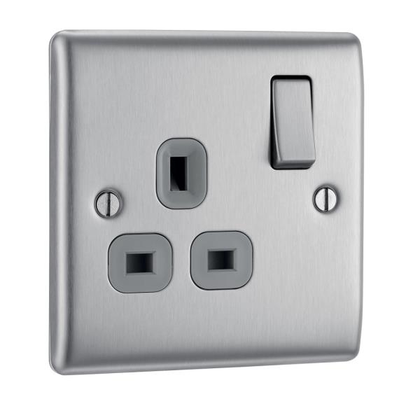 BG Nexus NBS21G Single Switched Socket 1G - 13A - Brushed Steel