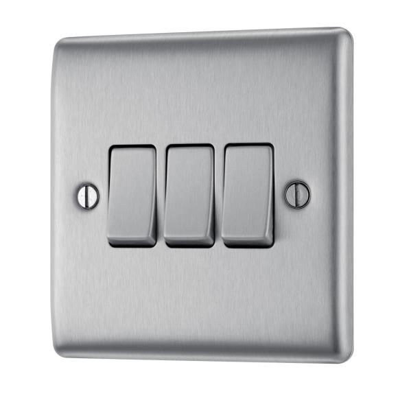 BG Nexus NBS43 Triple Switch 16AX 2 Way- 20A - Brushed Steel