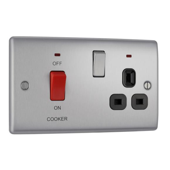 BG Nexus NBS70B Cooker Control Unit with Socket and LED Indicators - 45A - Brushed Steel