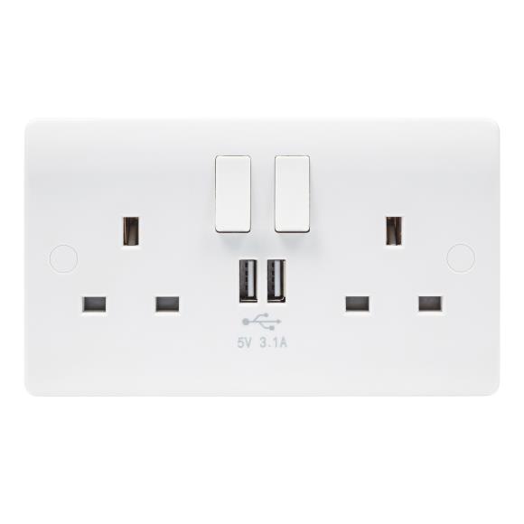 Niglon Median NS132USB-3 2G Socket Outlet with Twin USB - White Plastic
