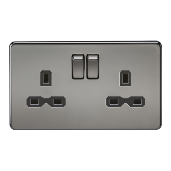Knightsbridge Screwless SFR9000BN DP 2G Switched Socket - Black Nickel Black Insert