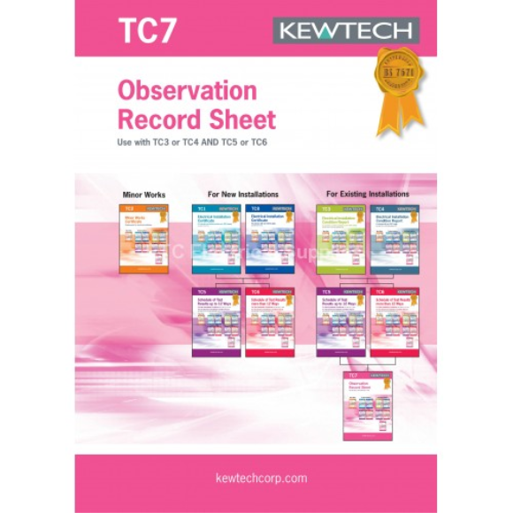 The Kewtech TC7 Observation and Record Sheet is designed to accompany a TC3 as a place to record recommendations and observations.