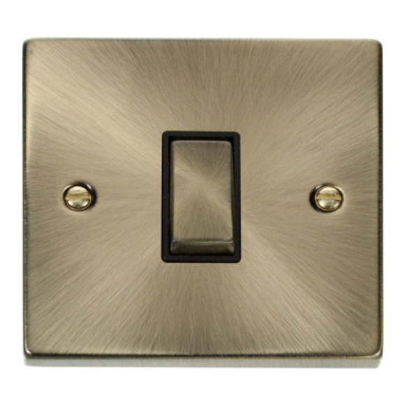Click VPAB411BK 1G 2Way 10AX Plate Switch - Antique Brass Black Insert