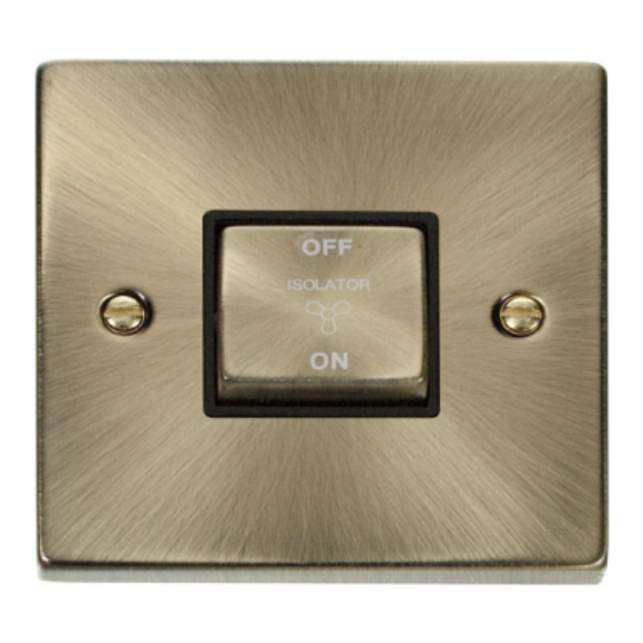 Click VPAB520BK 3 Pole Fan Isolation Switch - Antique Brass Black Insert