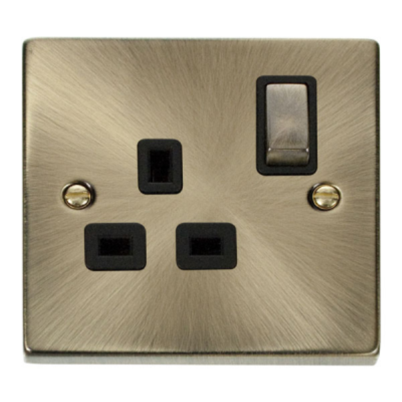Click VPAB535BK 1G DP Switched Socket - Antique Brass Black Insert