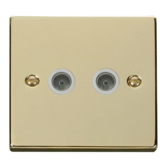 Click VPBR066WH Twin Non- Isolated Coaxial Outlet - Polished Brass White Insert