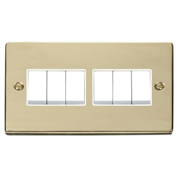 Click VPBR105WH 6G 2Way Plate Switch - Polished Brass White Insert