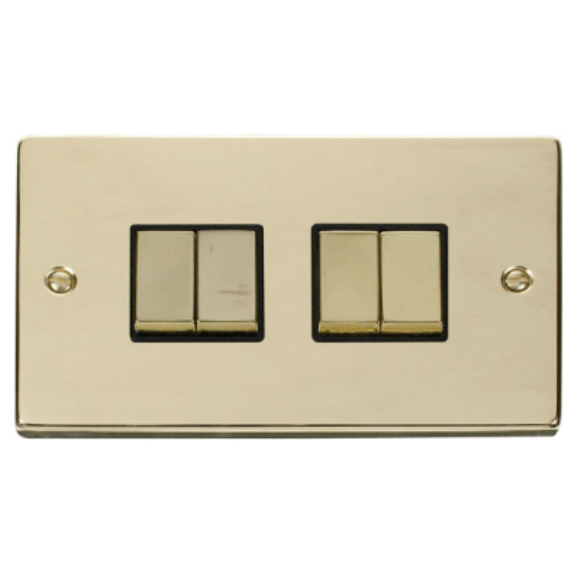 Click VPBR414BK 4G 2Way 10AX Plate Switch - Polished Brass Black Insert