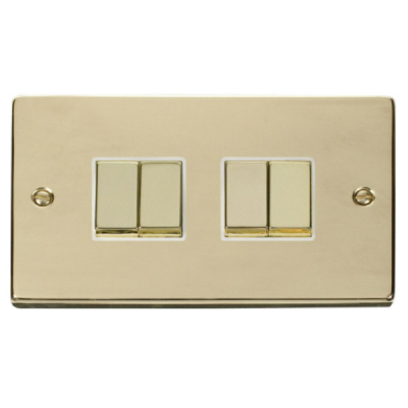 Click VPBR414WH 4G 2Way 10AX Plate Switch - Polished Brass White Insert
