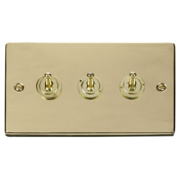 Click VPBR423 3G 2Way 10AX Toggle Plate Switch - Polished Brass
