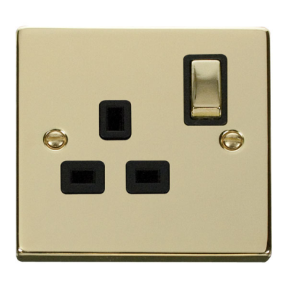 Click VPBR535BK 1G DP Switched Socket - Polished Brass Black Insert