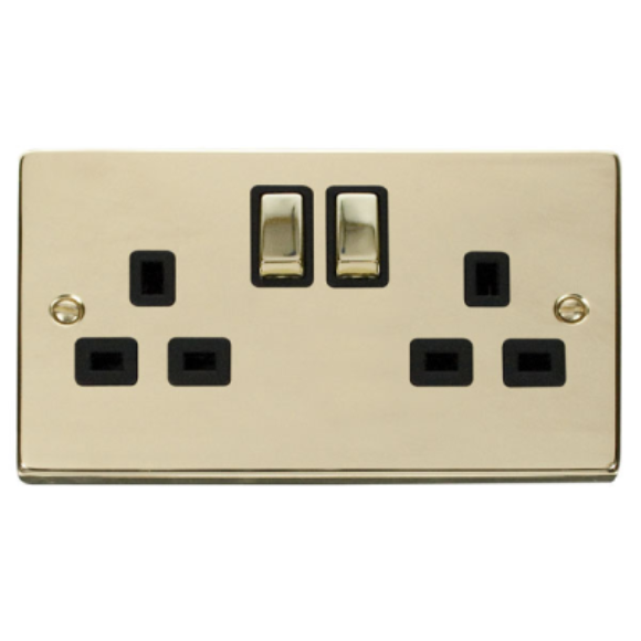 Click VPBR536BK 2G DP Switched Socket - Polished Brass Black Insert