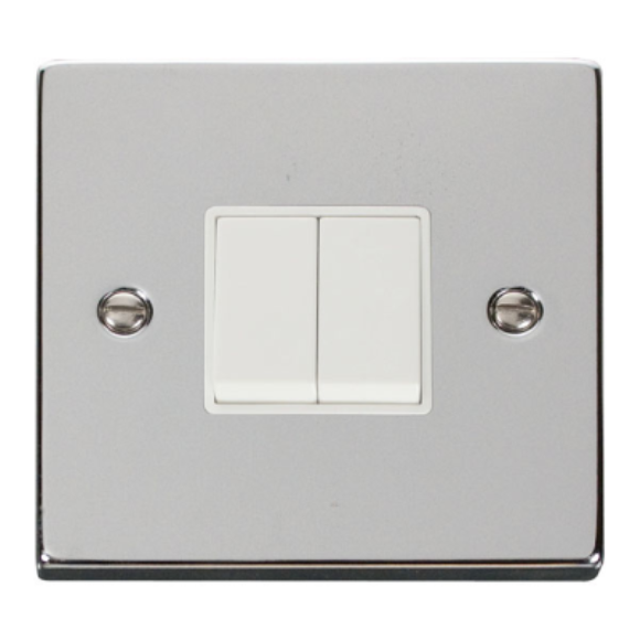 Click VPCH012WH 2G 2Way Plate Switch - Polished Chrome White Insert