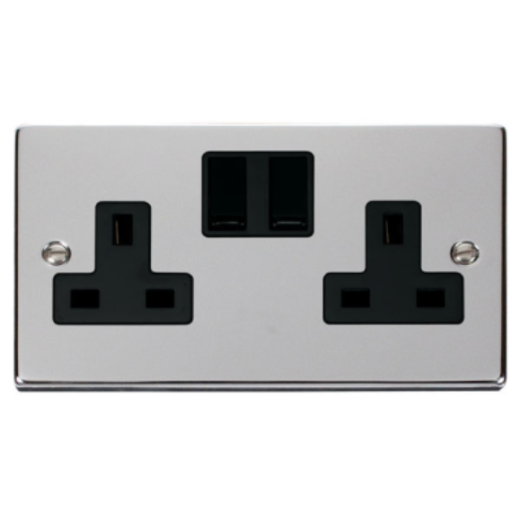Click VPCH036BK 2G DP Switched Socket - Polished Chrome Black Insert