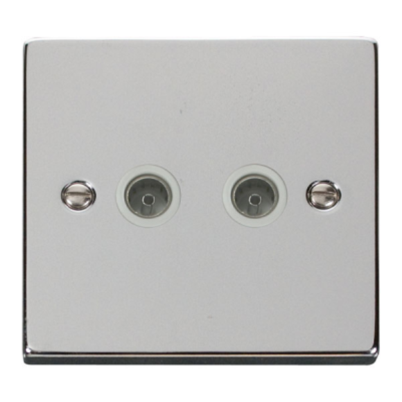 Click VPCH066WH Twin Non- Isolated Coaxial Outlet - Polished Chrome White Insert