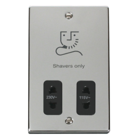 Click VPCH100BK Dual Shaver Socket - Polished Chrome Black Insert