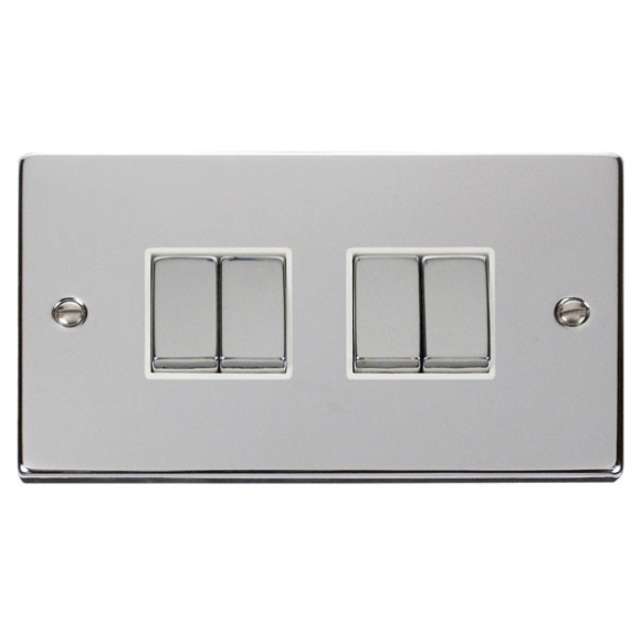Click VPCH414WH 4G 2Way 10AX Plate Switch - Polished Chrome White Insert