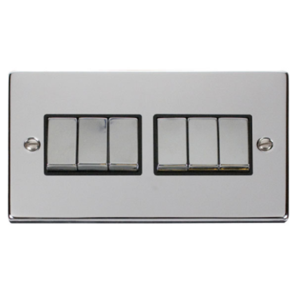 Click VPCH416BK 6G 2Way 10AX Plate Switch - Polished Chrome Black Insert