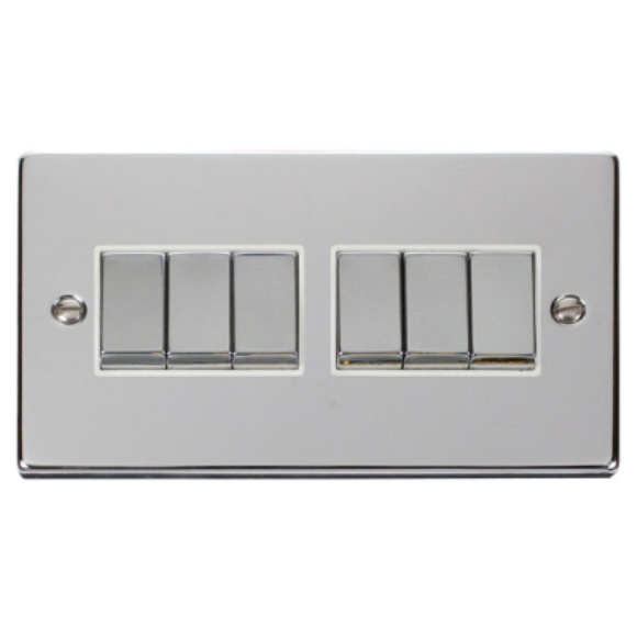 Click VPCH416WH 6G 2Way 10AX Plate Switch - Polished Chrome White Insert