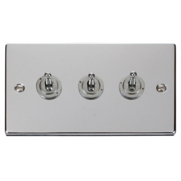 Click VPCH423 3G 2Way 10AX Toggle Plate Switch - Polished Chrome