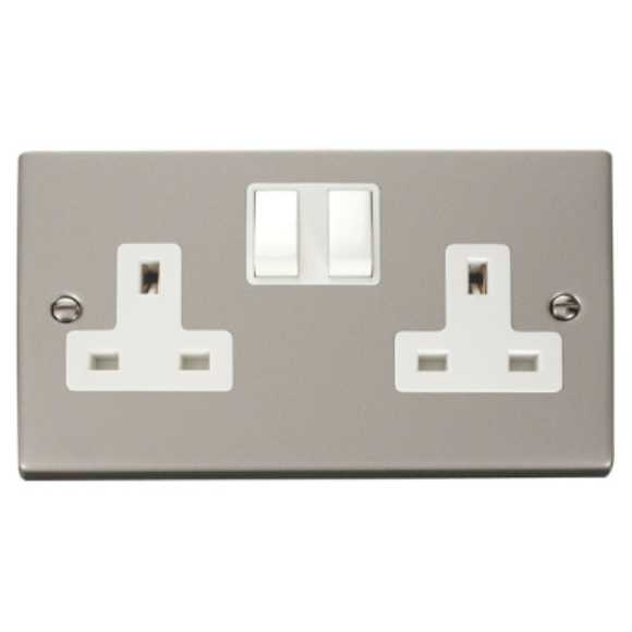 Click VPPN036WH 2G DP Switched Socket - Pearl Nickel White Insert