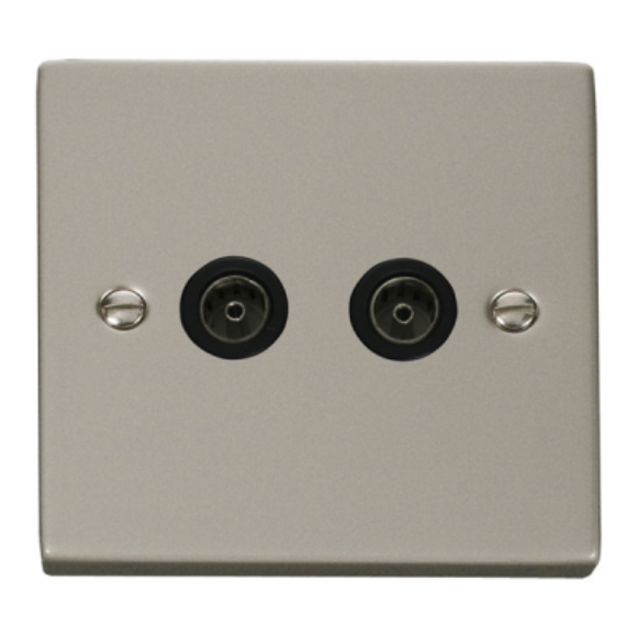 Click VPPN066BK Twin Non- Isolated Coaxial Outlet - Pearl Nickel Black Insert