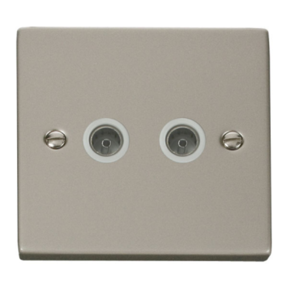 Click VPPN066WH Twin Non- Isolated Coaxial Outlet - Pearl Nickel White Insert