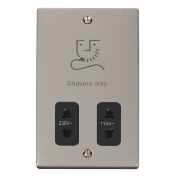 Click VPPN100BK Dual Shaver Socket - Pearl Nickel Black Insert