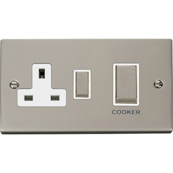 Click VPPN504WH 45A 2G DP Plate Switch & Switched Socket - Pearl Nickel White Insert