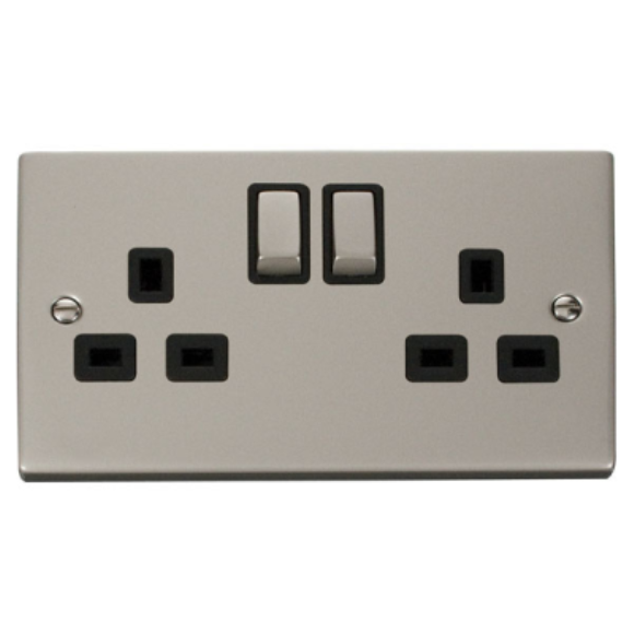 Click VPPN536BK 2G DP Switched Socket - Pearl Nickel Black Insert