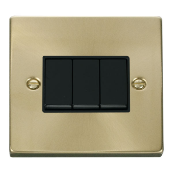 Click VPSB013BK 3G 2Way Plate Switch - Satin Brass Black Insert