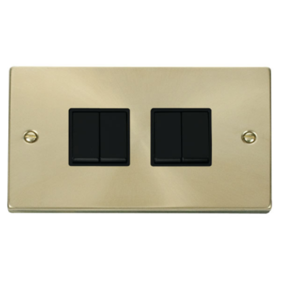 Click VPSB019BK 4G 2Way Plate Switch - Satin Brass Black Insert