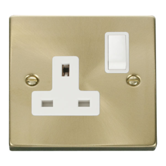 Click VPSB035WH 1G DP Switched Socket - Satin Brass White Insert