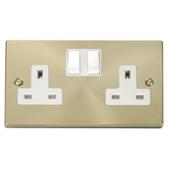 Click VPSB036WH 2G DP Switched Socket - Satin Brass White Insert