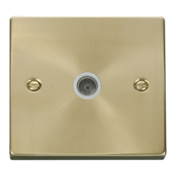 Click VPSB065WH Single Non- Isolated Coaxial Outlet - Satin Brass White Insert