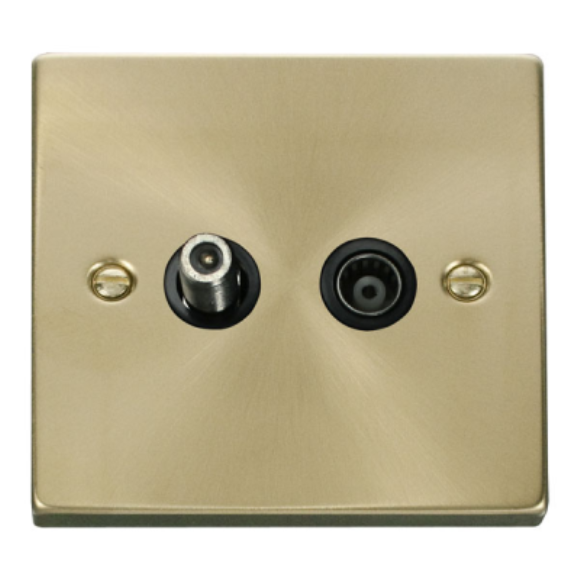 Click VPSB157BK Isolated Satellite & Coaxial Outlet - Satin Brass Black Insert