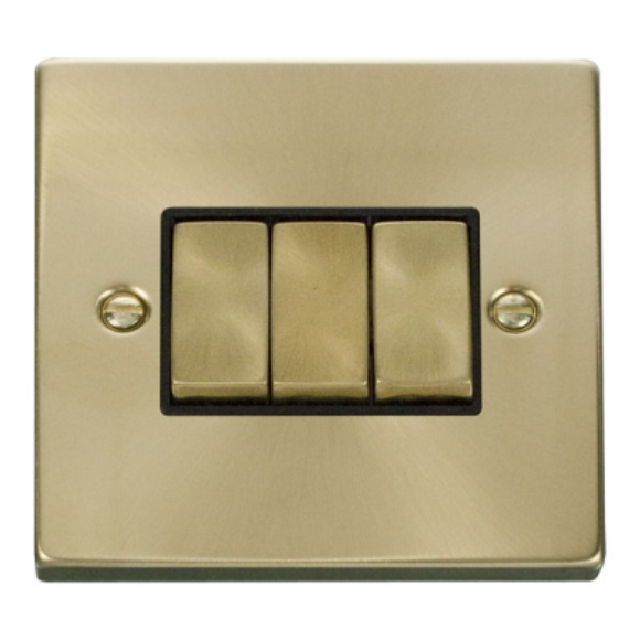 Click VPSB413BK 3G 2Way 10AX Plate Switch - Satin Brass Black Insert