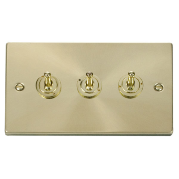 Click VPSB423 3G 2Way 10AX Toggle Plate Switch - Satin Brass