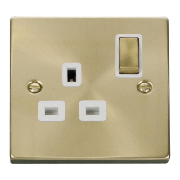 Click VPSB535WH 1G DP Switched Socket - Satin Brass White Insert