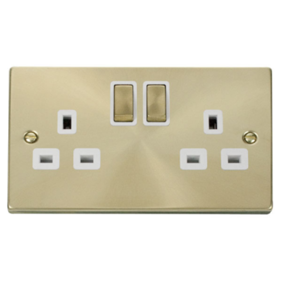 Click VPSB536WH 2G DP Switched Socket - Satin Brass White Insert