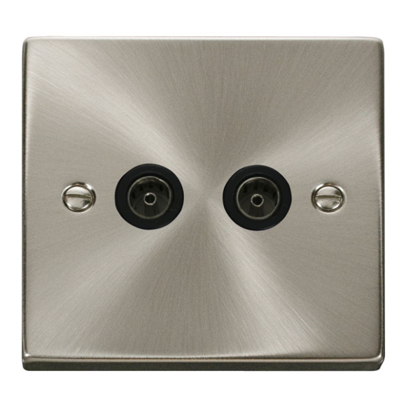 Click VPSC066BK Twin Non- Isolated Coaxial Outlet - Satin Chrome Black Insert