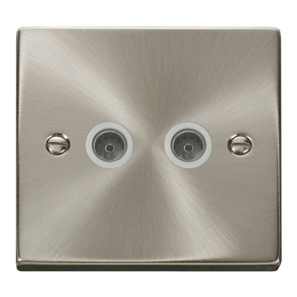 Click VPSC066WH Twin Non- Isolated Coaxial Outlet - Satin Chrome White Insert