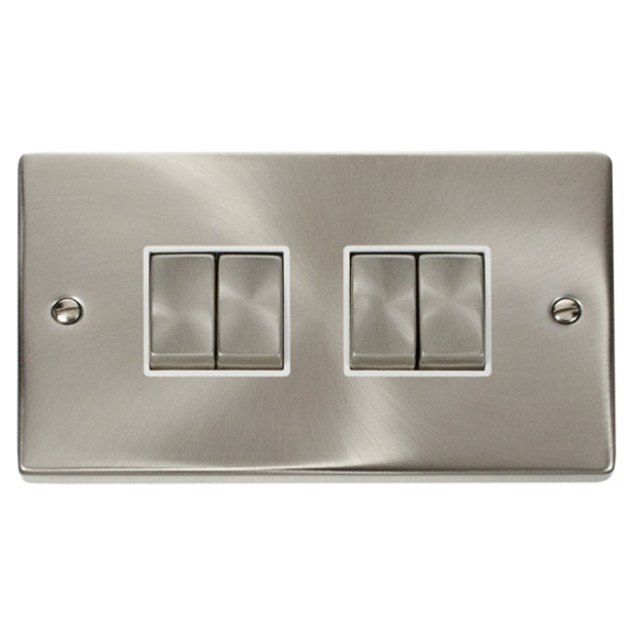 Click VPSC414WH 4G 2Way 10AX Plate Switch - Satin Chrome White Insert