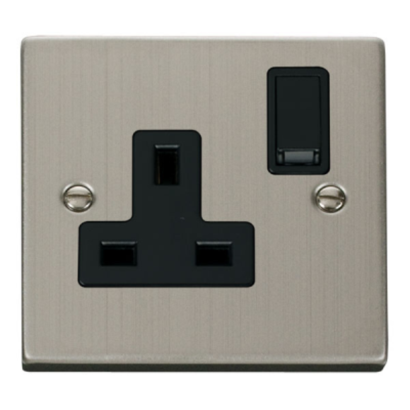 Click VPSS035BK 1G DP Switched Socket - Stainless Steel Black Insert