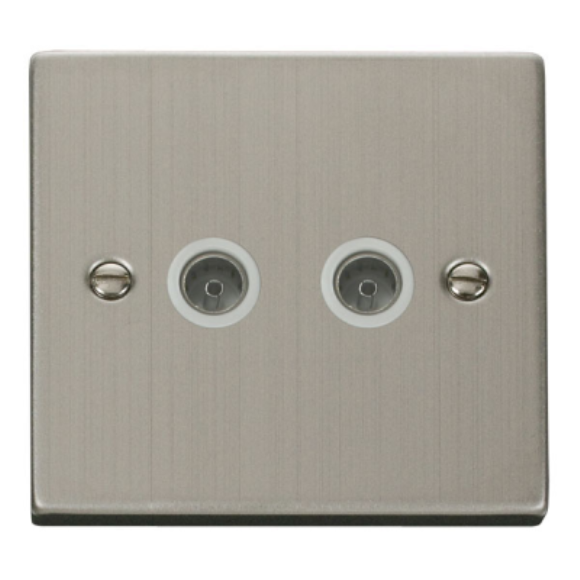 Click VPSS066WH Twin Non- Isolated Coaxial Outlet - Stainless Steel White Insert