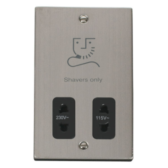 Click VPSS100BK Dual Shaver Socket - Stainless Steel Black Insert